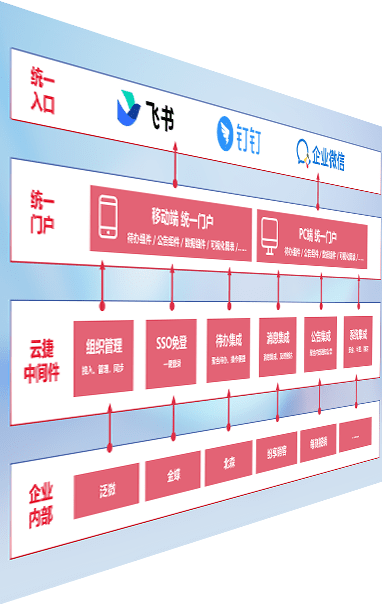 对协作平台提供支持服务,,支持企业应用与协作平台对接,,包含组织同步、、、、消息集成、、、待办集成等。。支持目前主流的协作平台:钉钉、、、企微和飞书。。。。